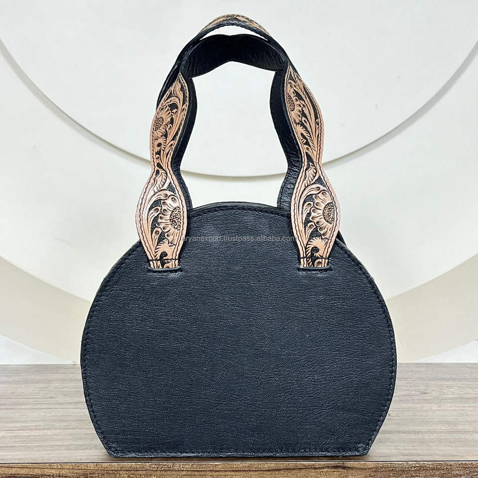 Product Name:Hand Tooled Cow Leather Checkered Handbag