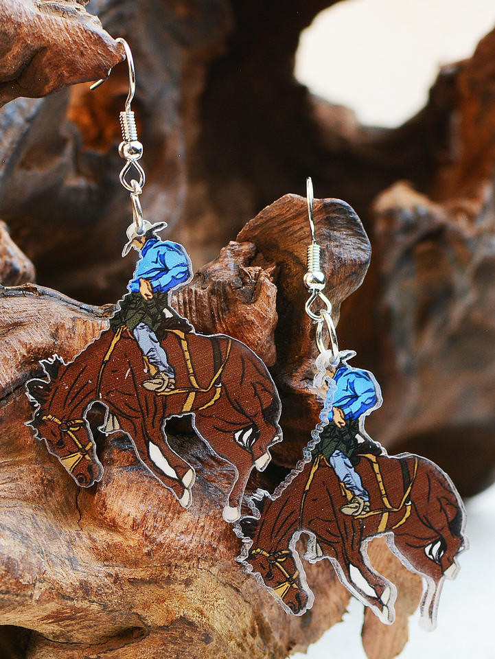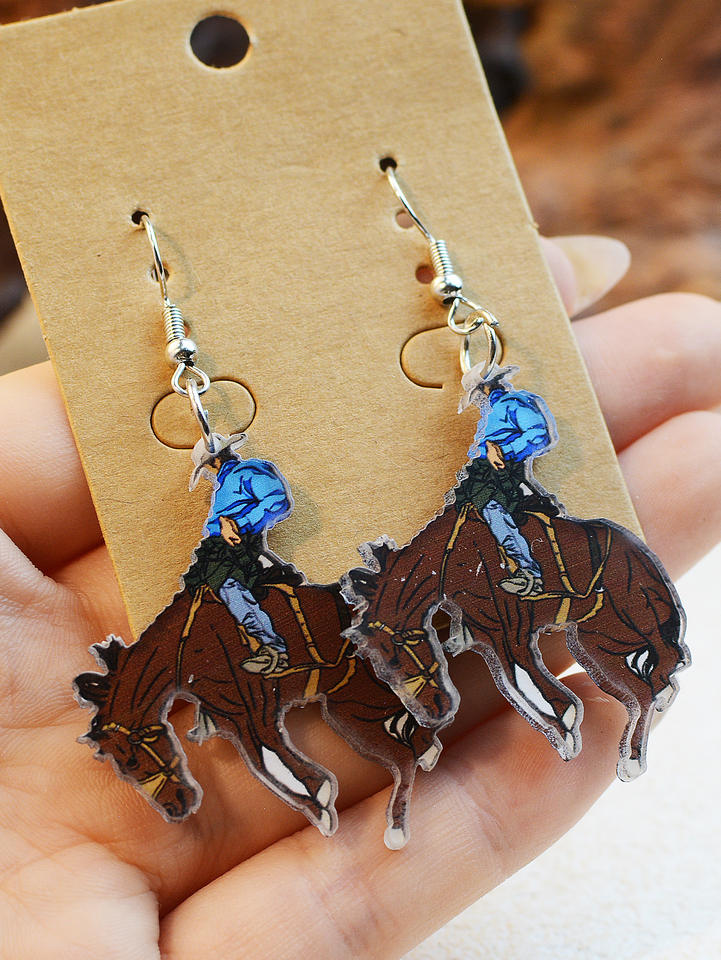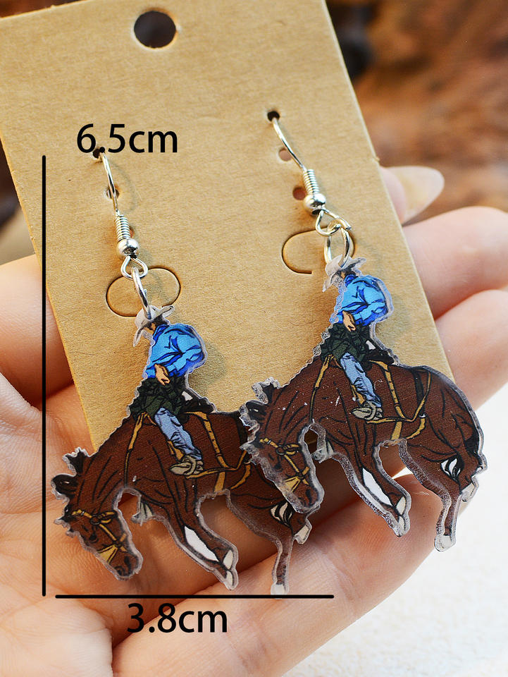 ต่างหูอะคริลิคแบบห้อยรูปม้าคาวบอยขี่ม้าสไตล์ตะวันตกสไตล์ย้อนยุคเครื่องประดับสำหรับคาวเกิร์ล