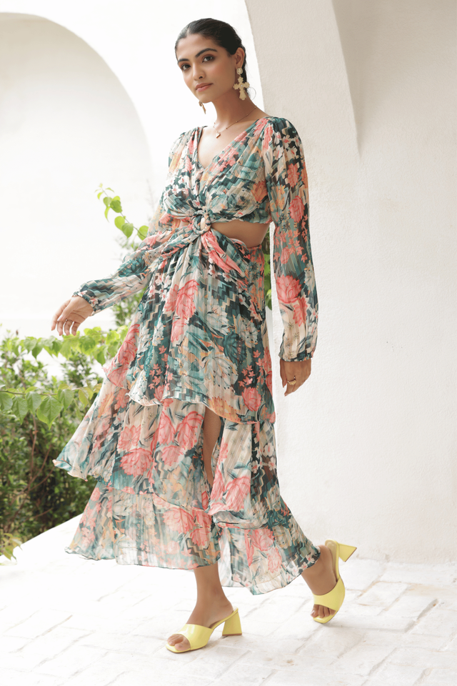 Western side cut printed chiffon Dresses for women Exclusive Design by Boho Hippy Chic Party Evening Dress At Factory Price