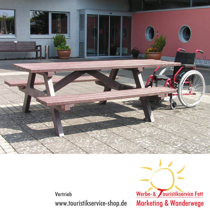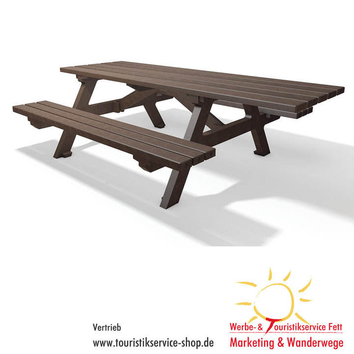 Westerwald ROLLI 2.40 m Brown Recycled Plastic Picnic Bench with Extended Table for Patios