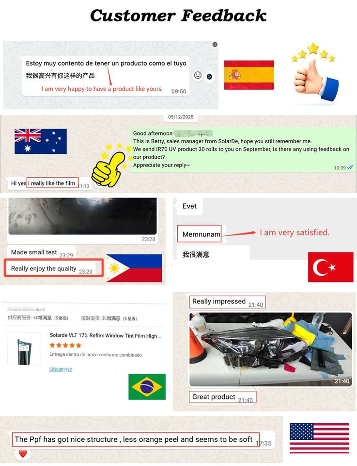 ป้องกัน UV: ฟิล์มนี้มีคุณสมบัติป้องกัน UV ช่วยป้องกันการซีดจางของสีรถจากการถูกแสงแดดทำลาย ทำให้สีและเงาของรถคงอยู่
