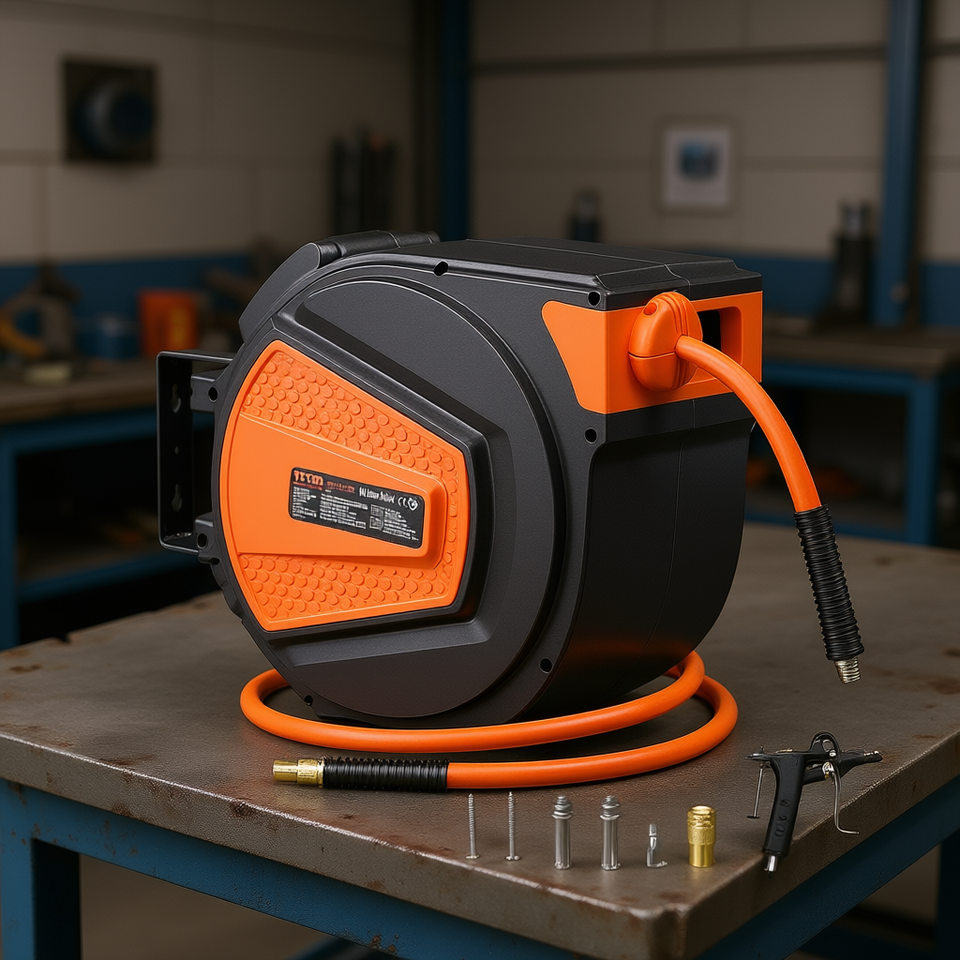 สายยางลมแบบม้วนเก็บได้ Wevor ขนาด 3/8 นิ้ว x 65 ฟุต แบบไฮบริด ปิดมิดชิด รับแรงดัน 300 ปอนด์ต่อตารางนิ้ว สำหรับอุปกรณ์อุตสาหกรรม