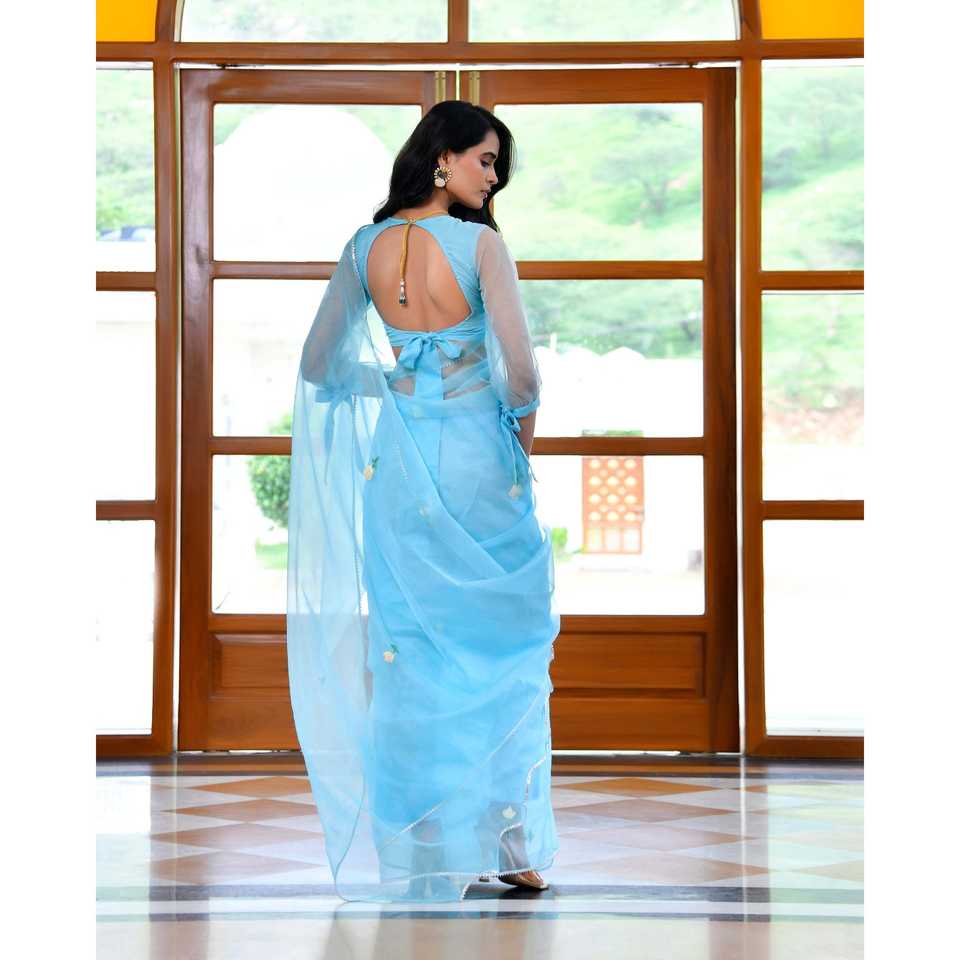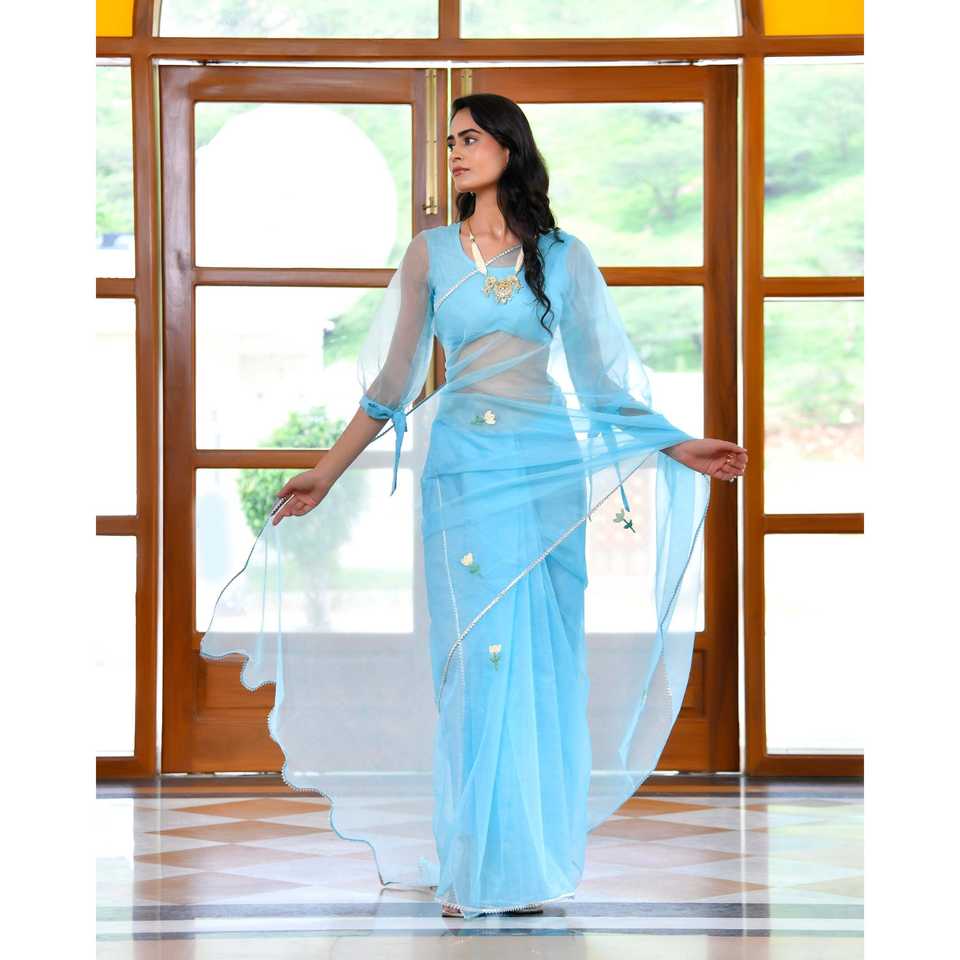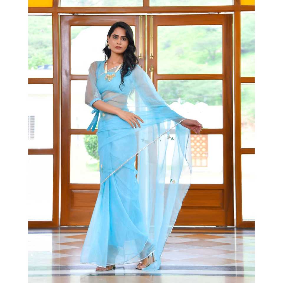ผ้าคลุมไหล่ยาวปักลายสีน้ำเงินวาฬ ผ้าออร์แกนซ่า พร้อมระบบตรวจจับเข็ม ฟรีไซส์ สำหรับสวมใส่กับส่าหรี