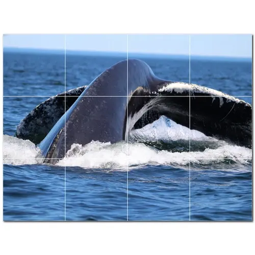ภาพจิตรกรรมฝาผนังกระเบื้องเซรามิกวาฬ PT501184 32 "W x 24" H ชุดกระเบื้อง12 8x8