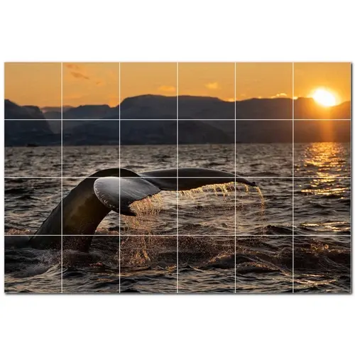 ภาพจิตรกรรมฝาผนังกระเบื้องเซรามิกวาฬ PT501185 25.5 \ "W x 17 \" H ชุดกระเบื้อง24 4.25
