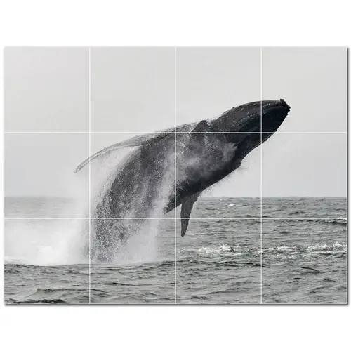 ภาพจิตรกรรมฝาผนังกระเบื้องเซรามิกวาฬ PT501188 17 \ "W x 12.75 \" H ชุดละ12 4.25กระเบื้อง