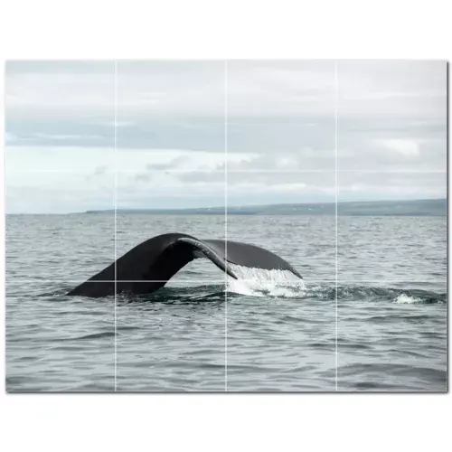 ชุด PT501191จิตรกรรมฝาผนังกระเบื้องเซรามิกรูปปลาวาฬ12 12X12 48 "W x 36" H