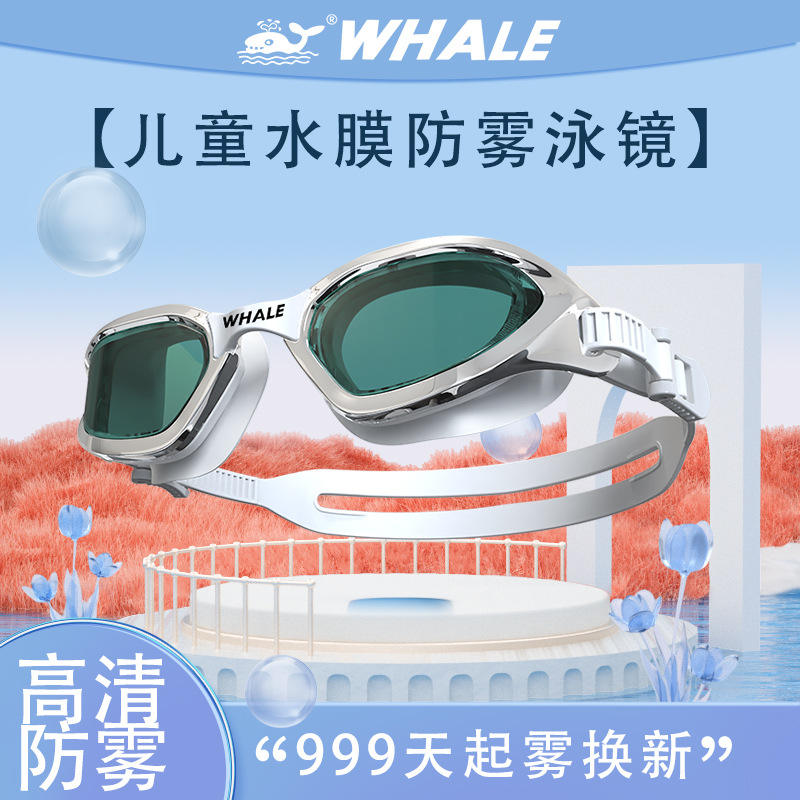 แว่นตาว่ายน้ำสำหรับเด็กวาฬ เลนส์พีซีป้องกันฝ้า สำหรับเด็กผู้หญิง