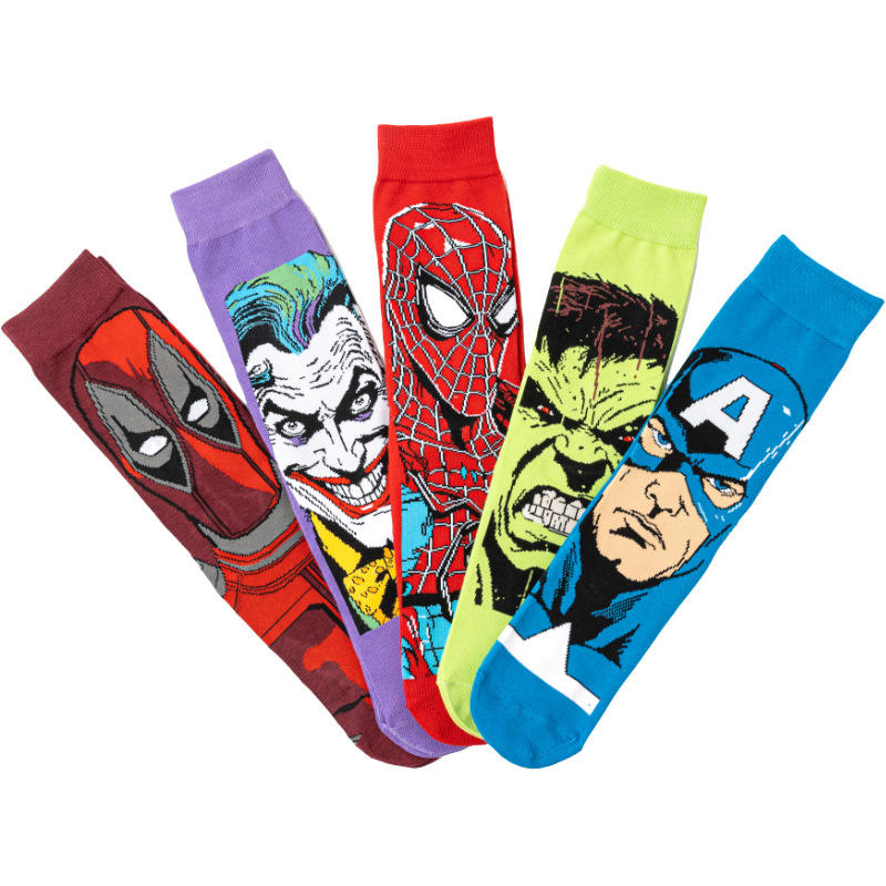 ถุงเท้าแฟชั่นสุดฮาสำหรับผู้ชายและผู้หญิงถุงเท้าคอตตอนลายการ์ตูนจากภาพยนตร์การ์ตูนเรื่องซูเปอร์ฮีโร่ถุงเท้าตัวตลกดีไซน์ใหม่ขายส่ง