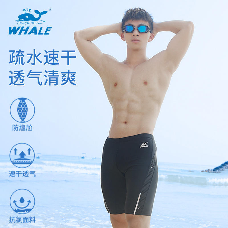 กางเกงว่ายน้ำผู้ชาย Whale สีดำล้วน ผ้าถัก แห้งเร็ว สำหรับว่ายน้ำ กีฬาทางน้ำ สำหรับผู้ใหญ่