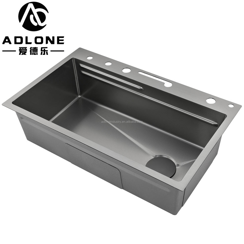 อ่างล้างจานในครัวสีดำนาโนพร้อมไฟ LED อเนกประสงค์รูปปลาวาฬ304น้ำตกฝนสแตนเลสพร้อมถ้วยเครื่องซักผ้า