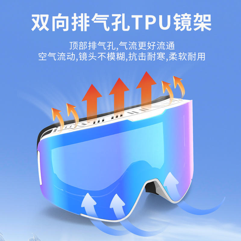 แว่นตาสกีสำหรับผู้ชายรูปทรงวาฬ เลนส์ป้องกันฝ้าสองชั้น วัสดุ PC สำหรับการปีนเขาและเล่นสกี อุปกรณ์กลางแจ้ง