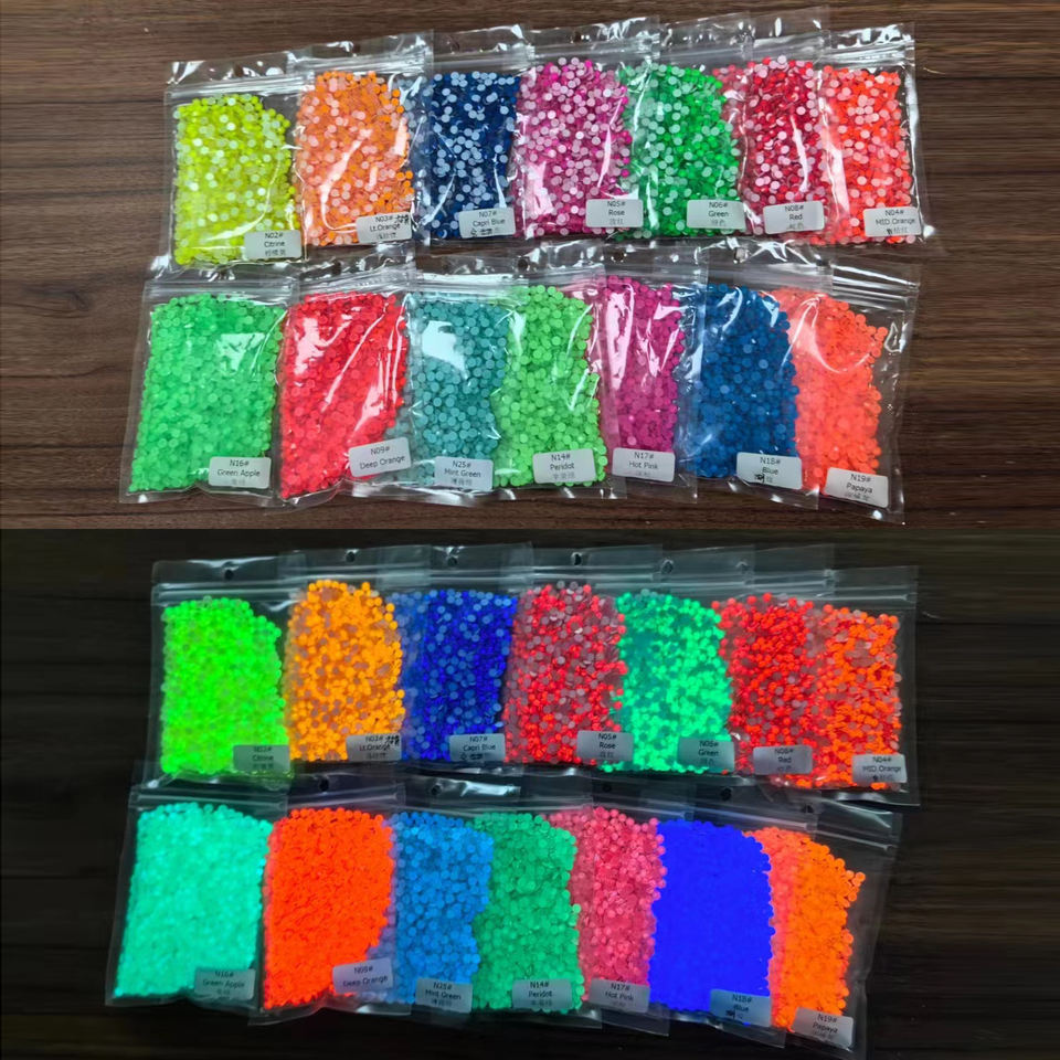 พลอยเทียมหลังแบนจำนวนมาก:เพชรเทียมแก้วนีออน