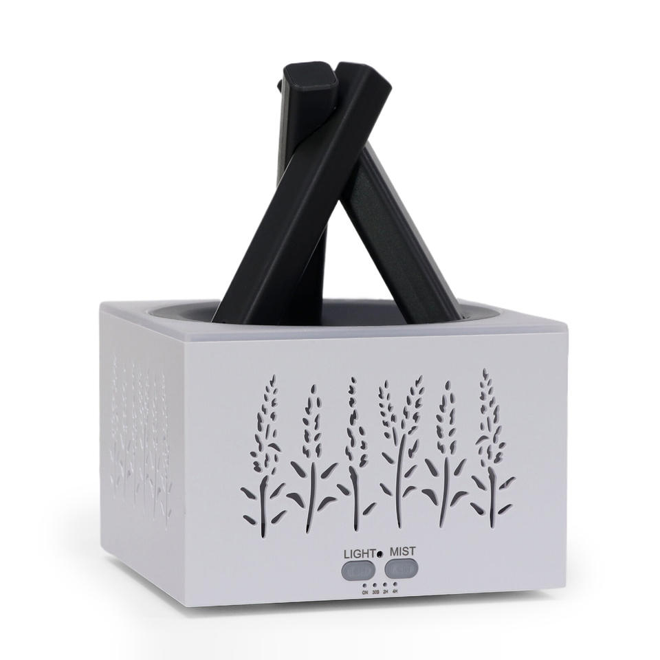 เครื่องกระจายกลิ่นหอมรูปรวงข้าวแบบสี่เหลี่ยม พร้อมไฟจำลองเปลวไฟ ลายไม้สีขาว ใช้พลังงาน USB ความจุ 0.5 ลิตร