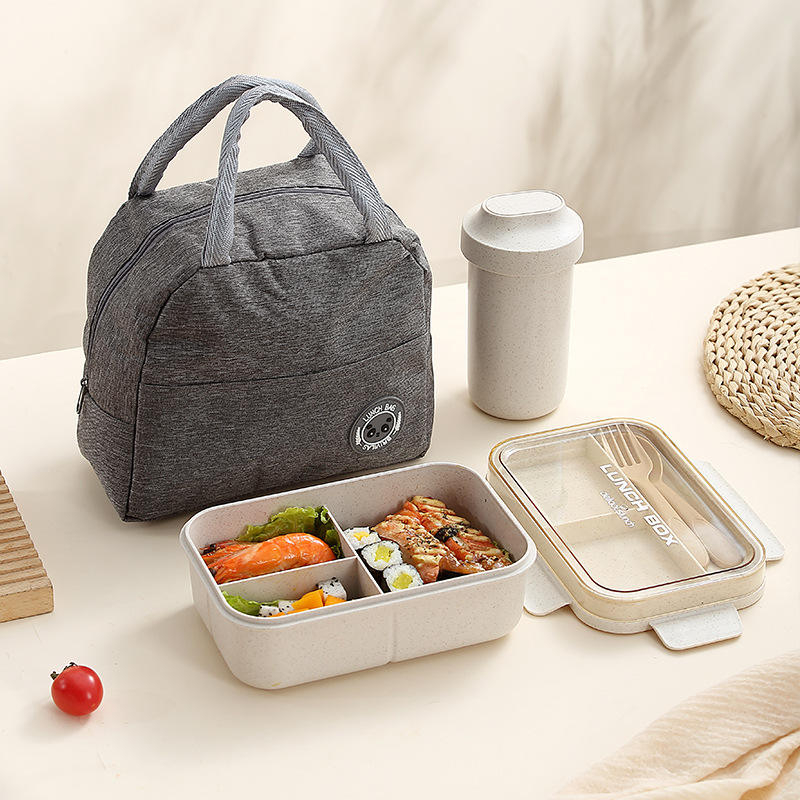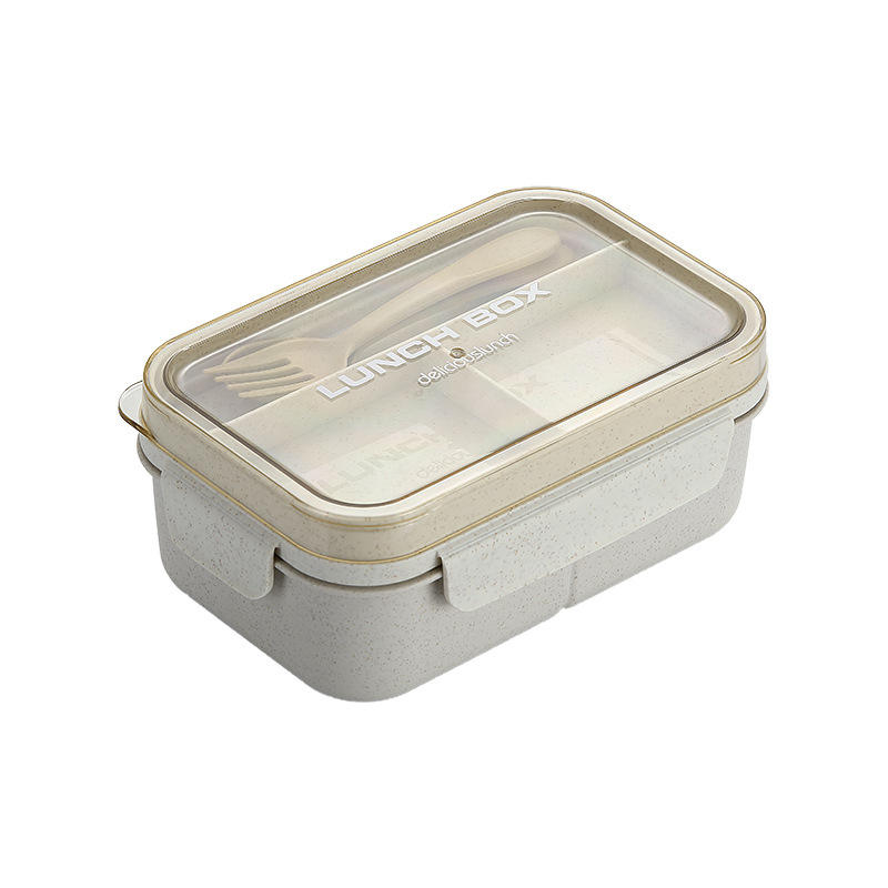 กล่องอาหารกลางวันใยข้าวสาลีทรงสี่เหลี่ยมผืนผ้า ใช้กับไมโครเวฟได้ พร้อมฝาปิด สำหรับนักเรียนและพนักงานออฟฟิศ