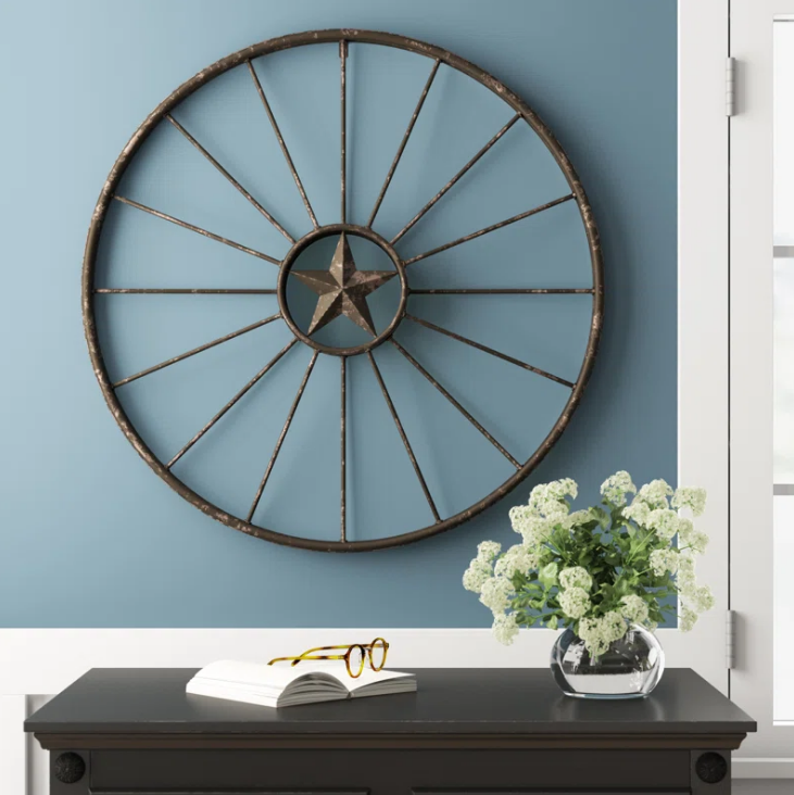 ล้อพร้อมดาวโลหะตกแต่งผนังคลาสสิกในร่มกลางแจ้งแขวนผนังโรงแรมร้านอาหารบ้านห้องนั่งเล่นห้องนอนตกแต่งศิลปะ