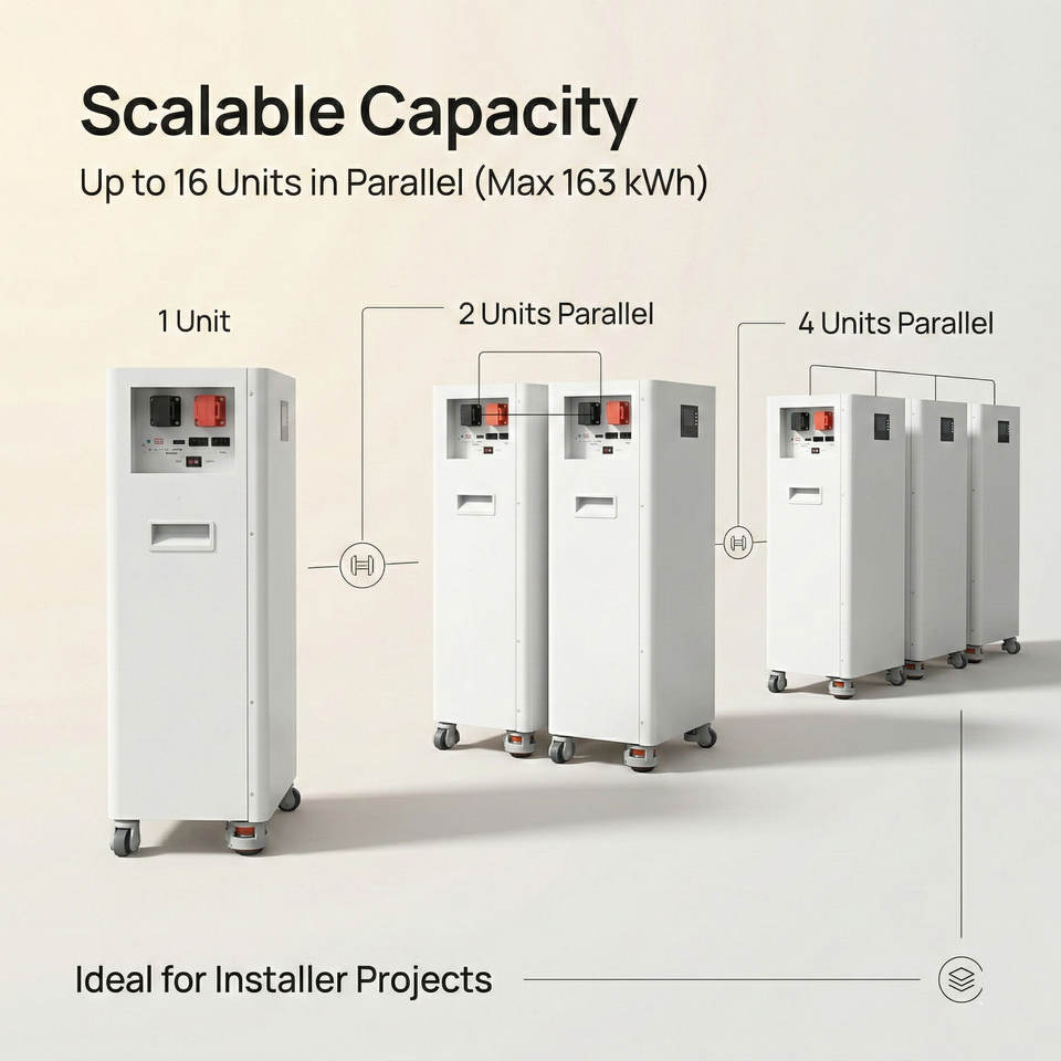 แบตเตอรี่ ESS แบบเคลื่อนย้ายได้ 51.2V 200Ah 10.24kWh CAN RS485 BMS IP20 ระบบพลังงานแสงอาทิตย์ แบตเตอรี่สำรองสำหรับระเบียง