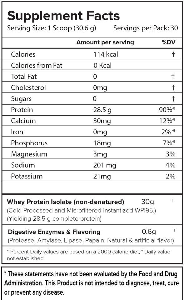ส่วนผสม:100% เวย์โปรตีนบริสุทธิ์พร้อมเอนไซม์ย่อยอาหาร