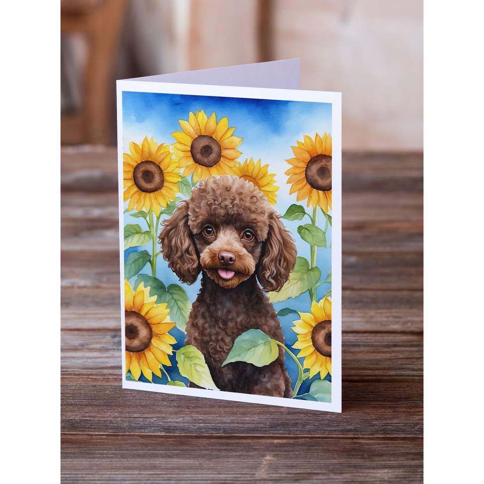 การ์ดเปล่าขนาด5x7แปลกๆแบบ A7ขนาด5x7ของพุดเดิ้ลช็อกโกแลต8ใบในการ์ดอวยพรดอกทานตะวันพร้อมซอง