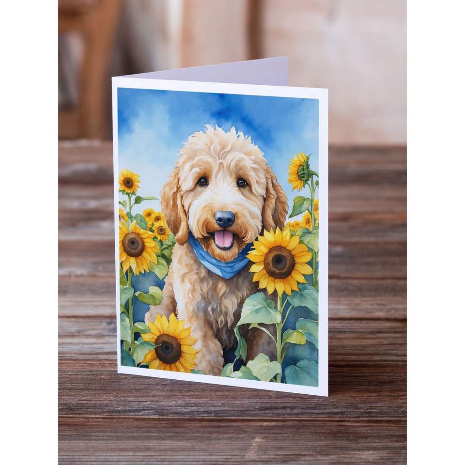 การ์ดเปล่าขนาด5x7แปลกๆขนาด A7แพ็คโกลด์ดูเดิล8ใบในการ์ดอวยพรดอกทานตะวันพร้อมซองจดหมาย