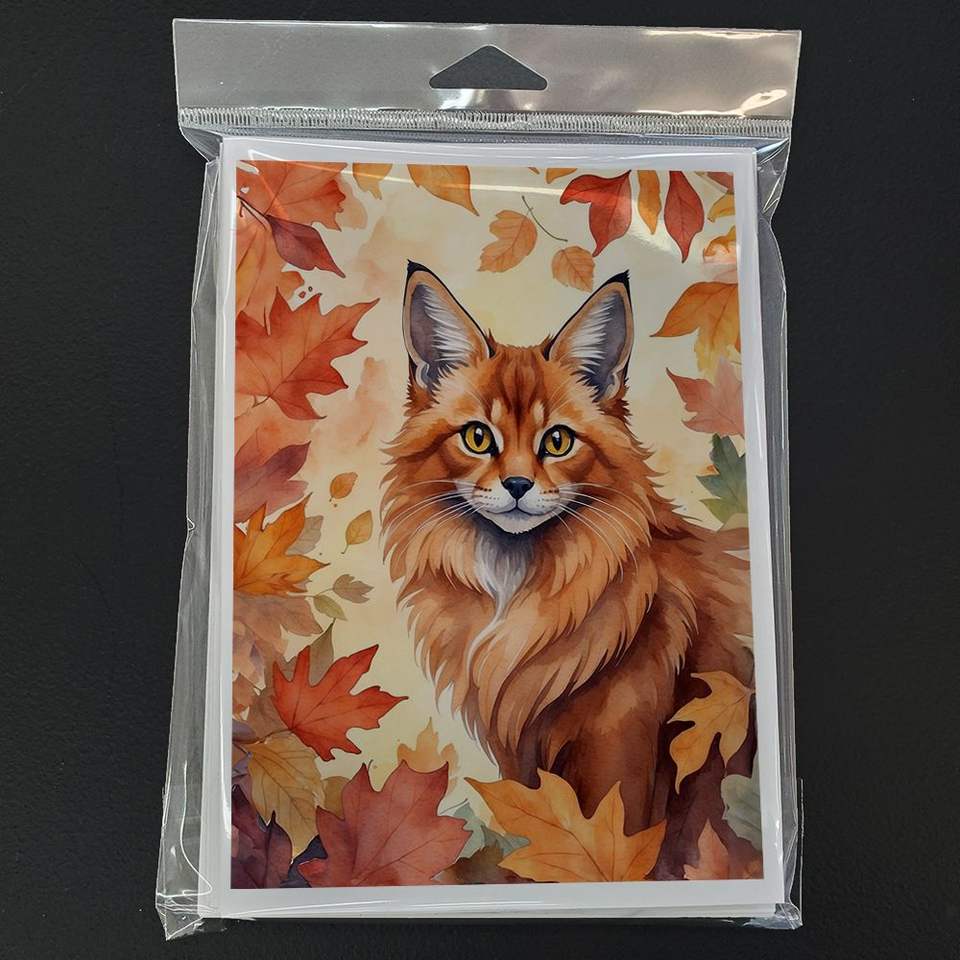 การ์ดเปล่าขนาด5x7แปลกรูปแมวโซมาเลียบรรจุในฤดูใบไม้ร่วงแพ็ค8ใบพร้อมการ์ดอวยพร