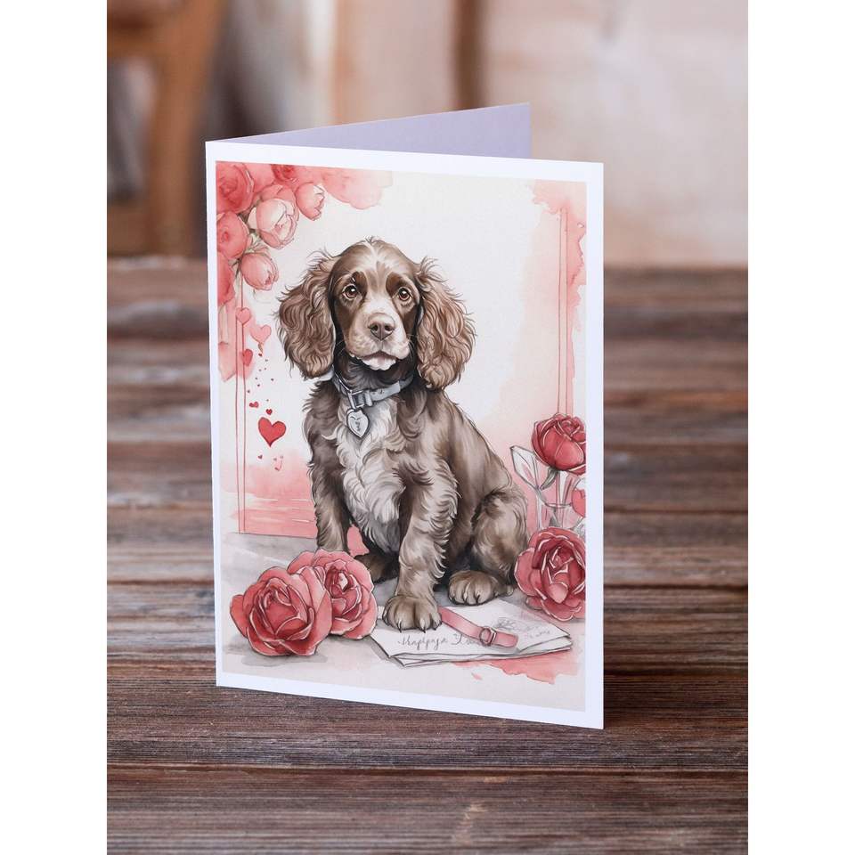 A7แปลกๆขนาด5x7สแปเนียลวาเลนไทน์กุหลาบเปล่าโน้ตการ์ดแพ็ค8ซองพร้อมการ์ดอวยพร