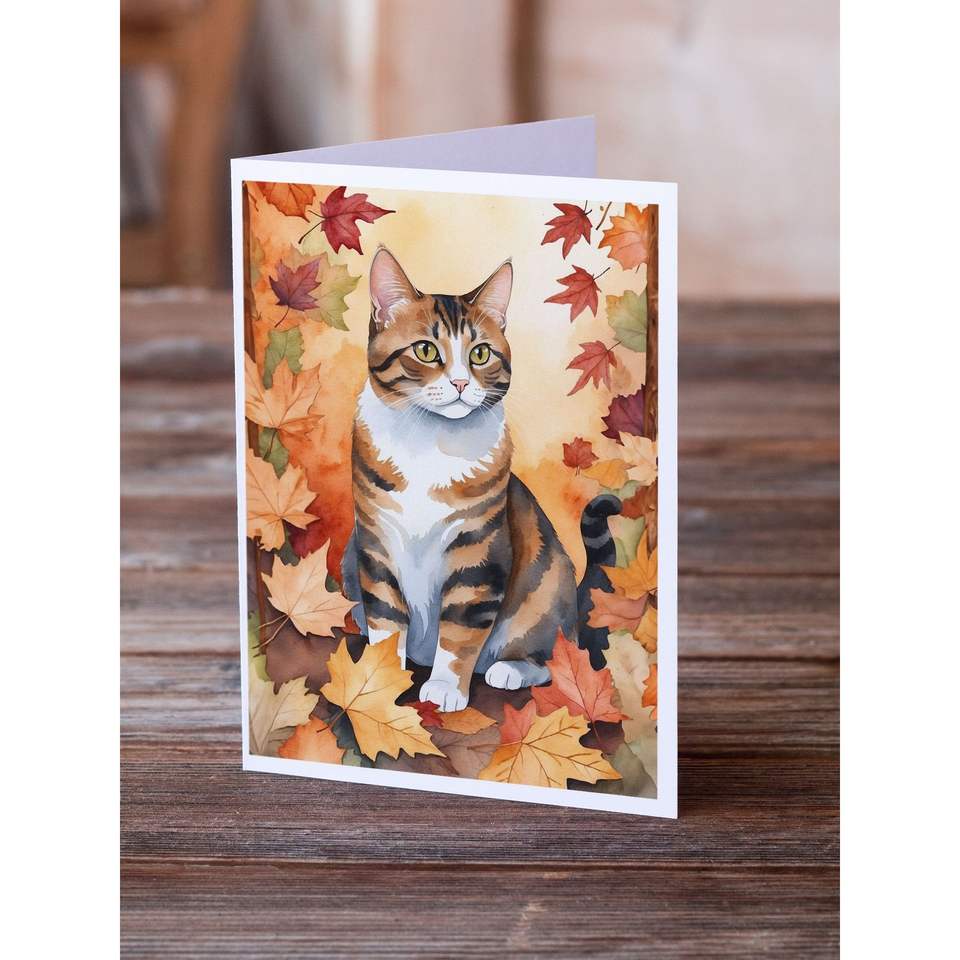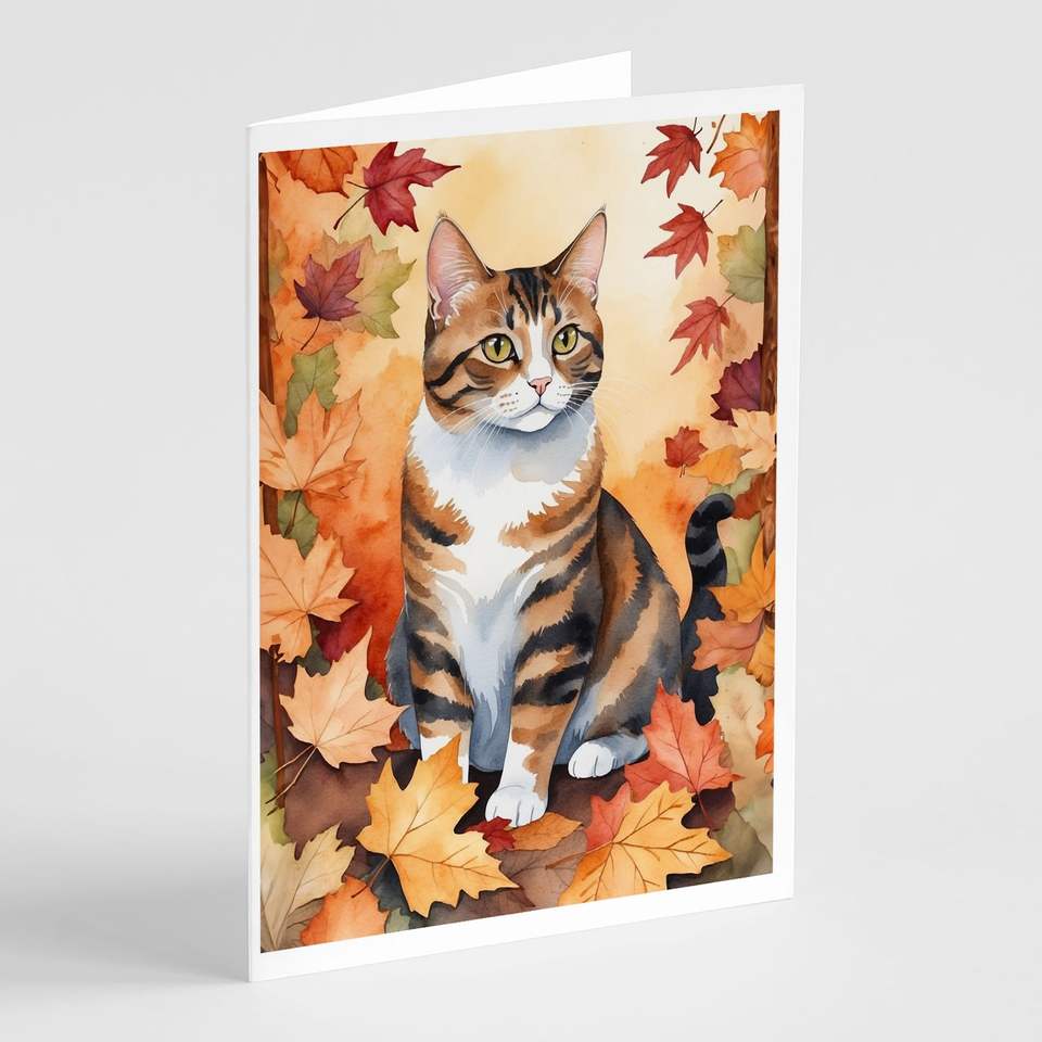 แมวแปลก polydactyl อเมริกันกับใบไม้ร่วง8ใบว่างเปล่า A7ขนาด5x7โน๊ตการ์ดพร้อมซองจดหมายสำหรับทักทาย