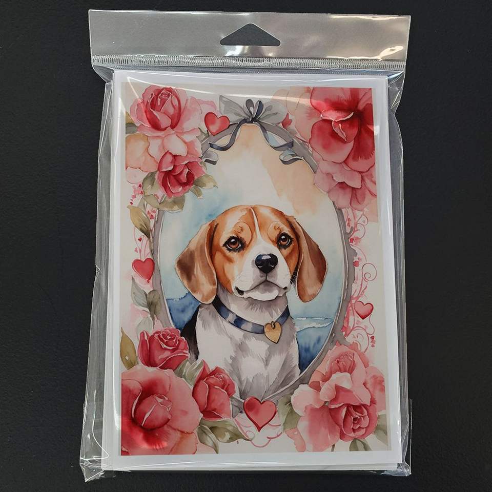 บีเกิ้ลแปลกและกุหลาบวาเลนไทน์ขนาด A7 5x7เปล่าโน้ตการ์ดแพ็ค8ซองสำหรับทักทาย