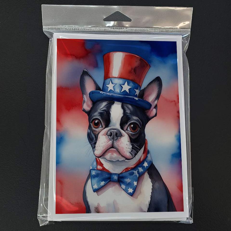 Whimsical Boston Terrier patriotic อเมริกันโน้ตแพ็ค8ว่างเปล่า A7ขนาด5x7การ์ดอวยพรกับซองจดหมาย