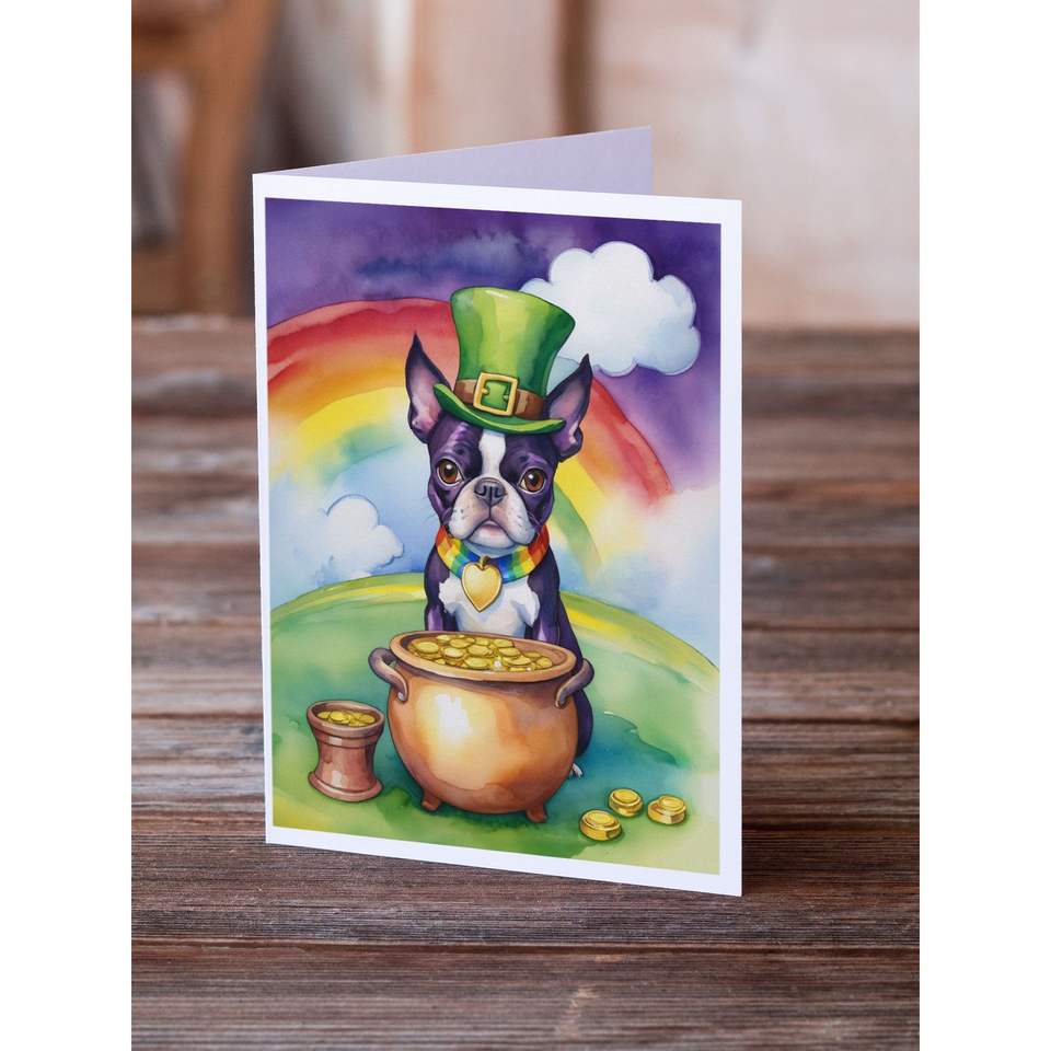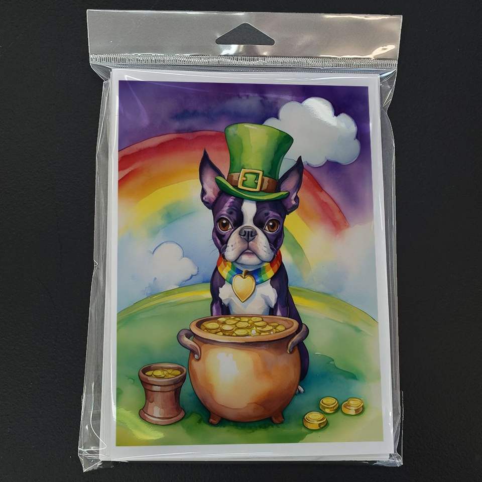 การ์ดอวยพรวัน whimsical Boston Terrier ST Patrick's Day ขนาด8 A7ขนาด5x7การ์ดเปล่าพร้อมซอง