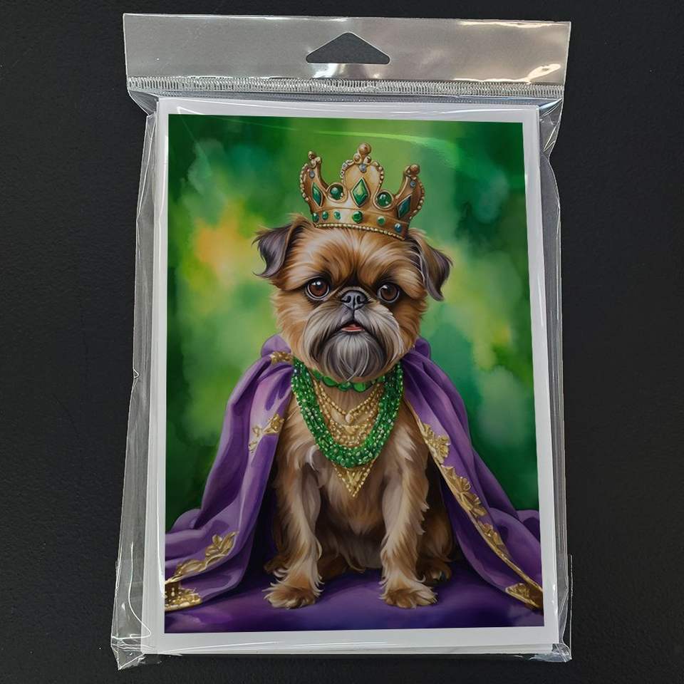 Whimsical Brussels Griffon King of Mardi Gras Greeting Cards Pack 8 Blank A7 Note Cards with Envelopes 5x7 Size