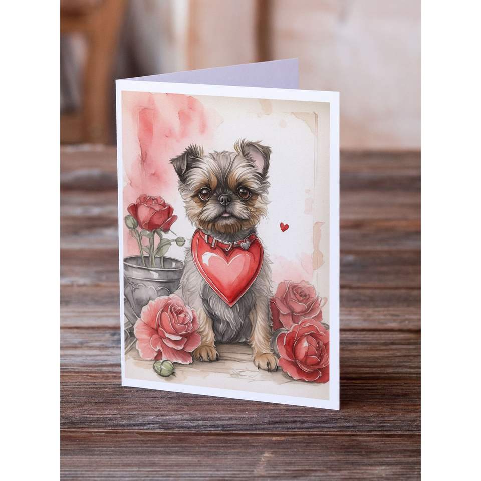 บรัสเซลส์กริฟฟอนแปลกๆและกุหลาบวาเลนไทน์ขนาด A7 5x7การ์ดเปล่าแพ็ค8ซองพร้อมซองจดหมายสำหรับทักทาย