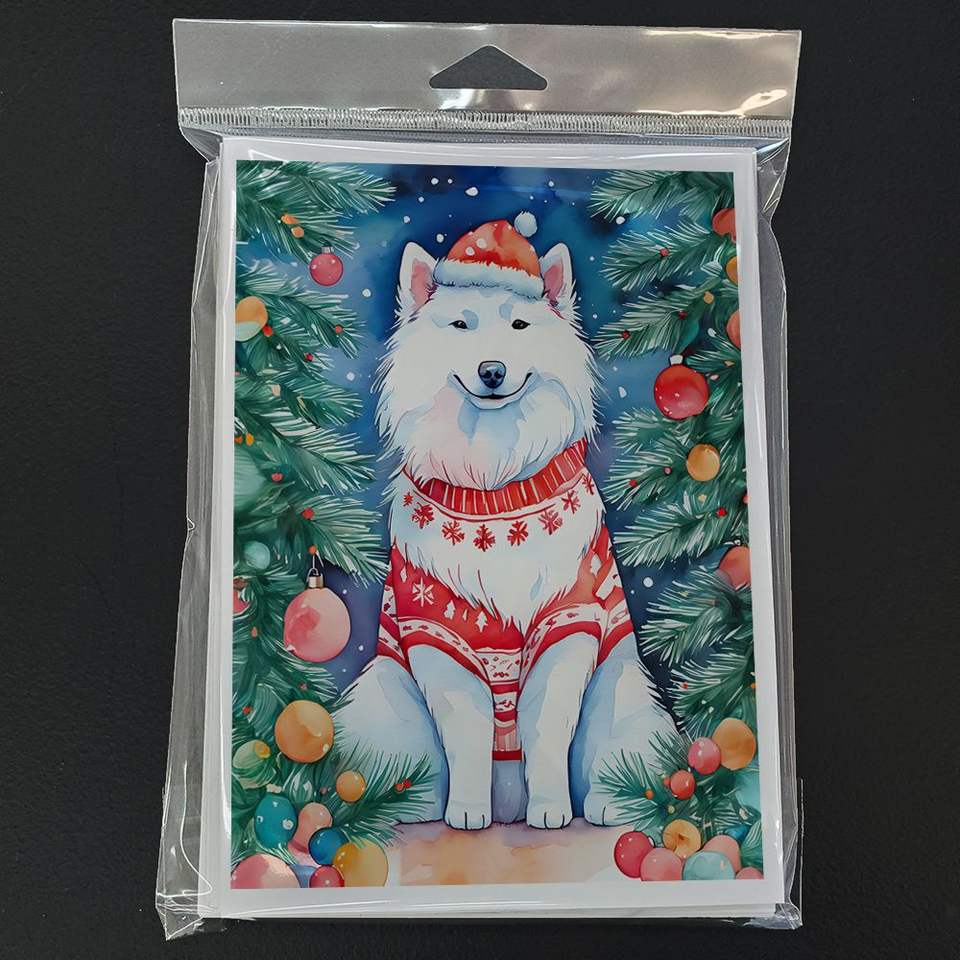การ์ดอวยพรคริสต์มาส Samoyed แปลกๆแพ็ค8 A7ขนาด5x7การ์ดเปล่าพร้อมซองจดหมาย