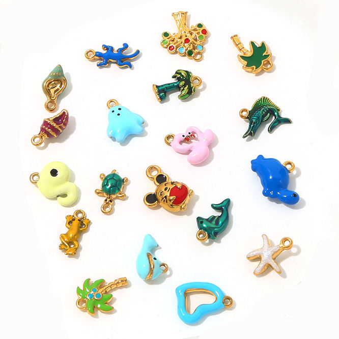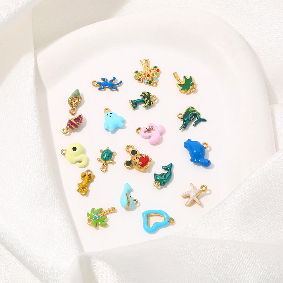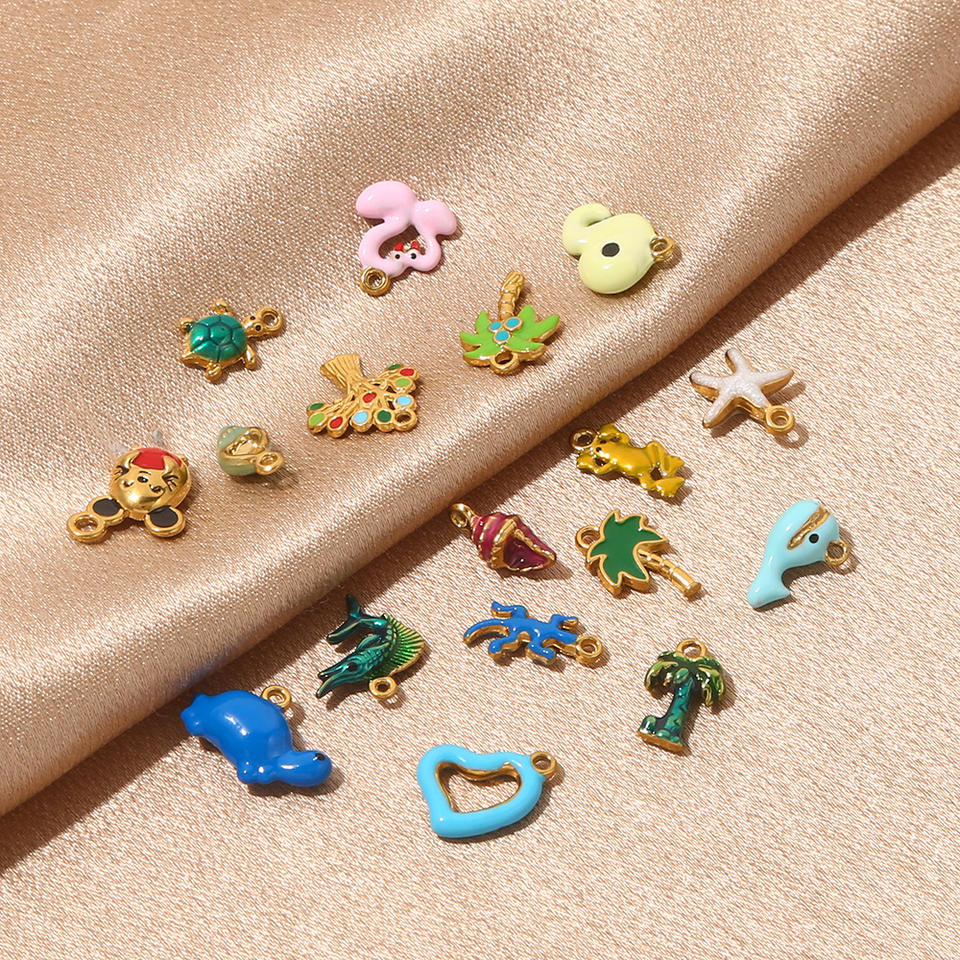 ความฝันฤดูร้อนที่แปลกประหลาด | ชาร์มเคลือบทอง 18K PVD บนสแตนเลสสตีลเคลือบเงา สำหรับทำเครื่องประดับ DIY | จี้รูปมหาสมุทรเขตร้อน
