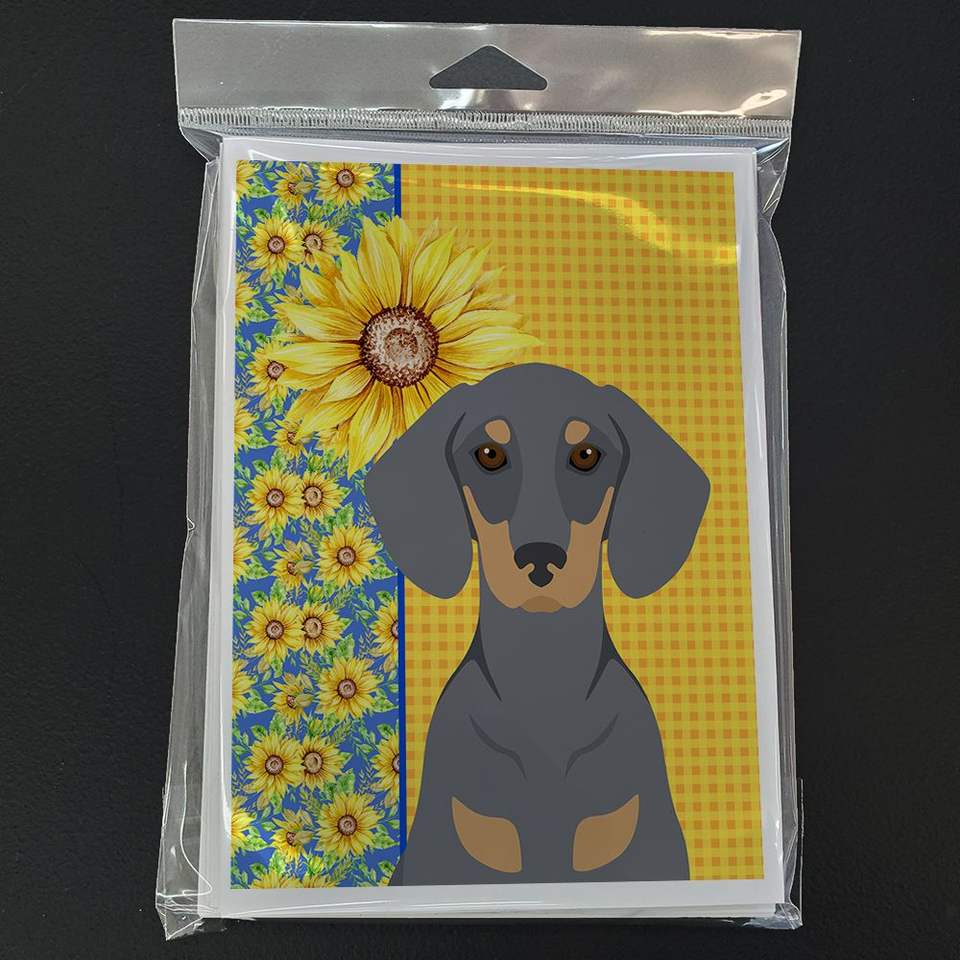 บัตรอวยพรรูปดอกทานตะวันและดัชชุนด์แบบแปลกๆในฤดูร้อนบรรจุ8 A7ขนาด5x7การ์ดเปล่าพร้อมซองจดหมายสีฟ้าแทน