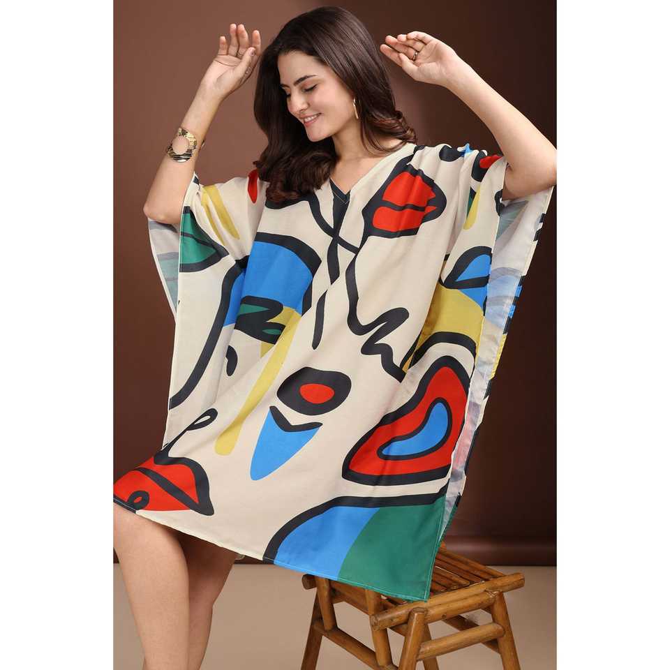 แปลกชุดเดรสคาฟตันผ้าฝ้ายของผู้หญิงหรูหราสไตล์ลำลองออกแบบได้เองยาวถึงเข่าสั้นสำหรับใส่กลางวันคลับบริการฮิปปี้