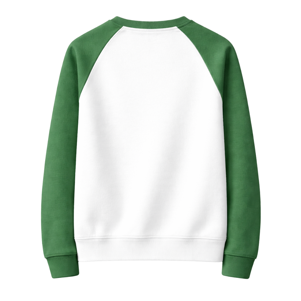 เสื้อสเวตเชิ้ตแขนแร็กแลน คอกลม สีขาว รุ่น 08 Legacy สำหรับสตรี ชุดนักเรียนหญิง สีชมพูและสีเขียว ชุดพี่น้องนักศึกษาหญิง ชุดนักเรียนหญิงกรีก
