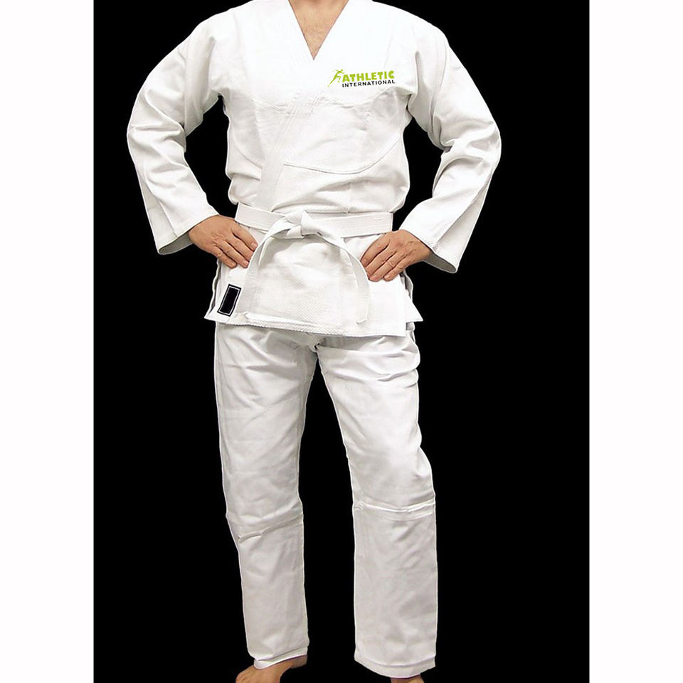 ชุดเครื่องแบบยูโดผ้าฝ้าย100% ขาวทอไข่มุก Jitsu คาราเต้