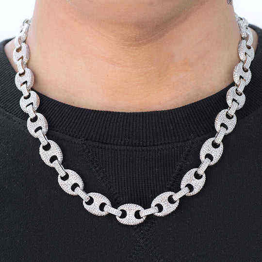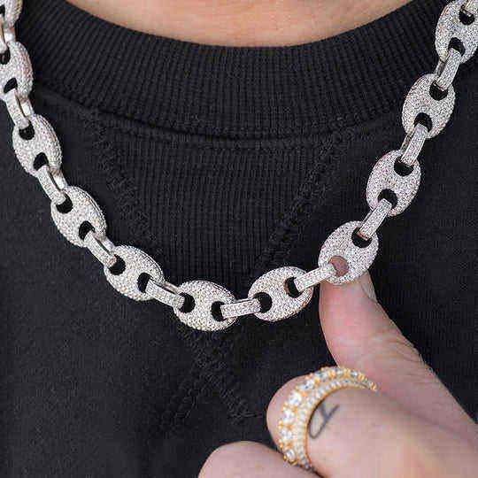 สีขาว10K 14K สีทอง16มม. สร้อยคอโซ่เชื่อมโยงแบบคิวบาประดับเพชรธรรมชาติเครื่องประดับฮิปฮอปเครื่องประดับแฟชั่นสุดหรู