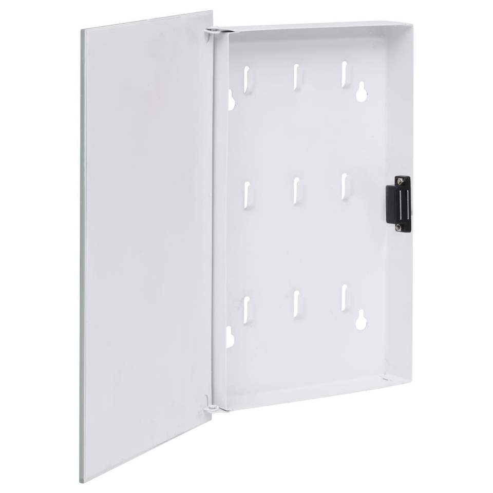 กล่องใส่กุญแจสีขาวขนาด 11.8"x7.9"x1.6" พร้อมกระดานแม่เหล็กสำหรับจัดเก็บจดหมายและกุญแจติดผนัง
