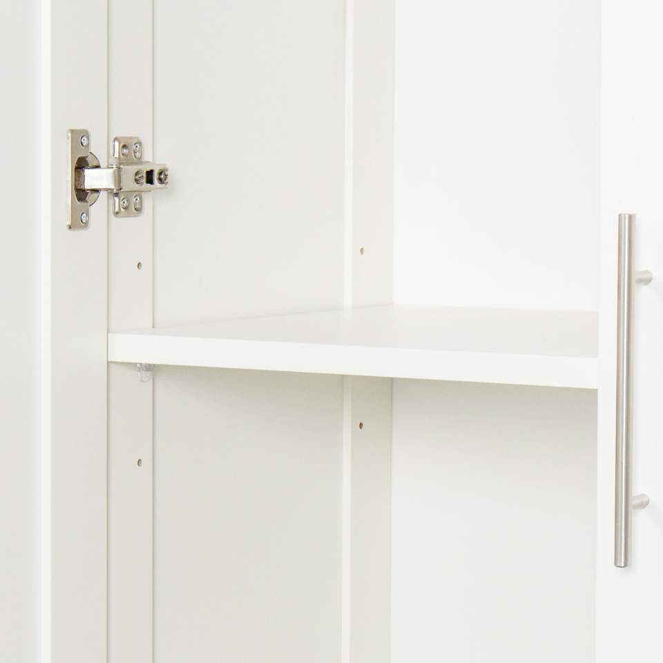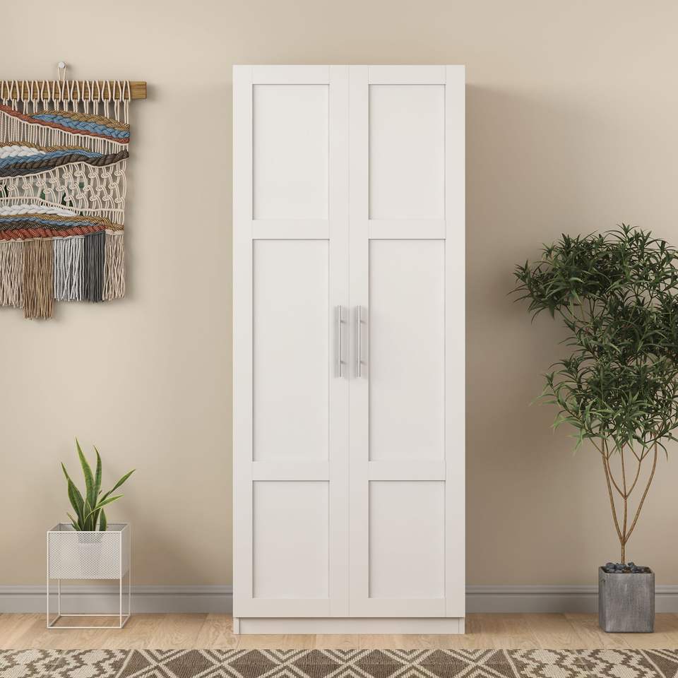 ตู้ครัวสูง 2 ประตู สีขาว พร้อมช่องแบ่ง 3 ส่วนสำหรับแยกพื้นที่จัดเก็บ 4 ช่อง ดีไซน์ตู้เสื้อผ้าอเนกประสงค์
