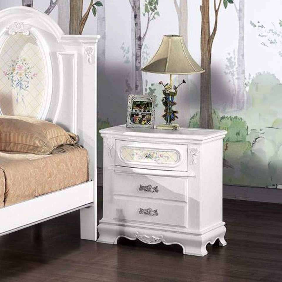 โต๊ะข้างเตียง2ลิ้นชักสีขาวลวดลายดอกไม้สวยงาม
