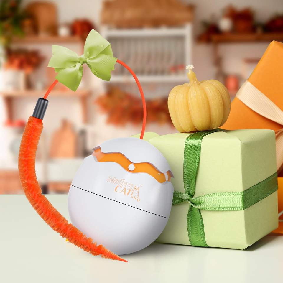 สปินเนอร์ปิดอัตโนมัติหมุน360องศาสีขาวของเล่นแมวทำจากพลาสติก ABS แข็งแรงทนทานของเล่นเคลื่อนไหวแบบโต้ตอบสำหรับในบ้านแมวลูกแมว