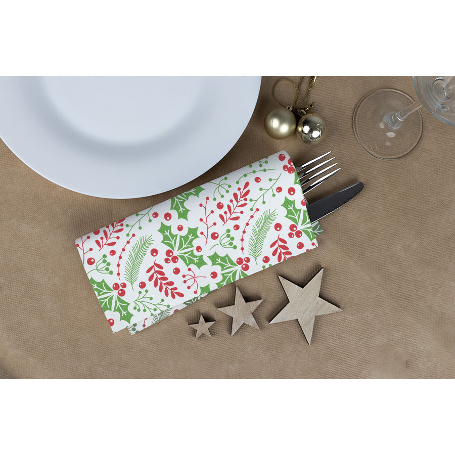 ผ้าเช็ดปากพิมพ์ลายสีเขียวมูเอร์ดาโก้ ขนาด 40x40 ซม. สีขาว ผ้าเช็ดปากเนื้อนุ่ม 300 ชิ้น B2B