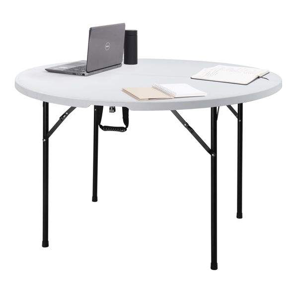 โต๊ะอเนกประสงค์พับได้ทรงกลมสีขาวขนาด 48 นิ้วสำหรับใช้งานกลางแจ้ง แทนที่ 94515737 สีขาว