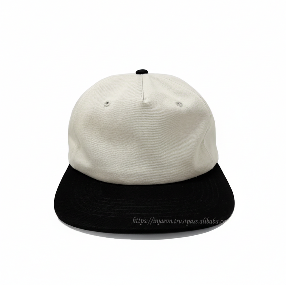 หมวก Snapback ธรรมดา5แผงสีขาวที่มีดีไซน์มินิมอล2D แบรนด์เย็บปักถักร้อยด้านหลังและสีเขียวอันเดอร์บริม