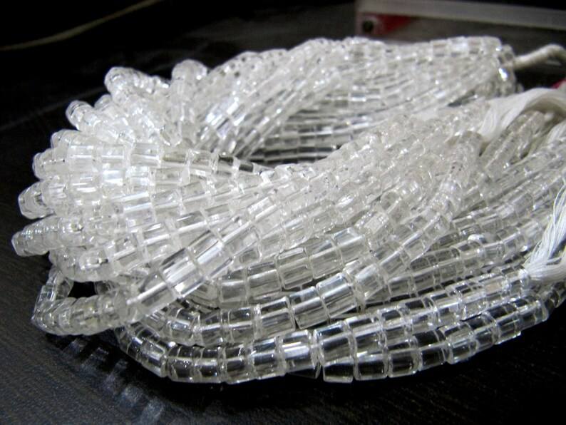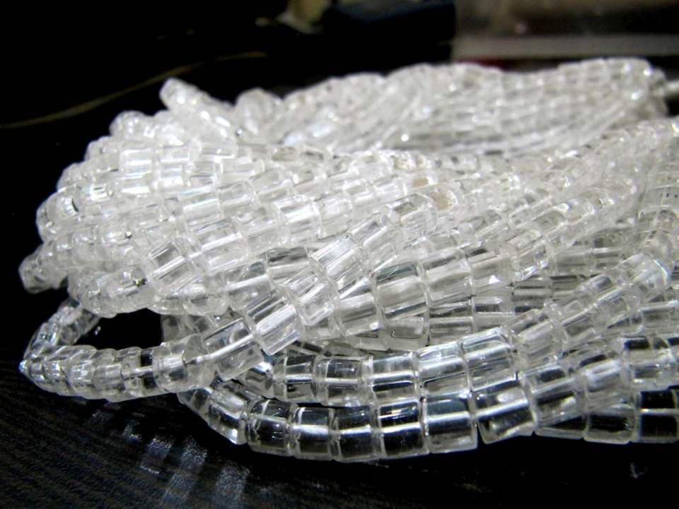 ลูกปัดหินคริสตัลทรงกล่องเรียบขนาด5มม. สีขาวยาว10นิ้ว