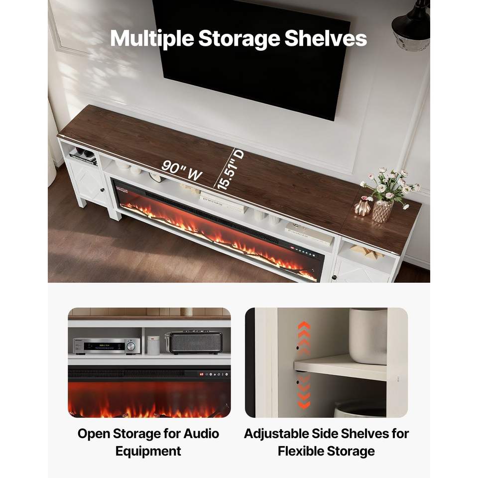 White 60-Inch Farmhouse Fireplace TV Stand Storage Drawers 100-Inch Entertainment Center Remote Control for Living Room Bedroom