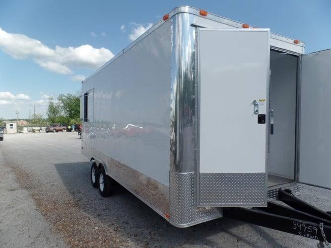 รถขายอาหารเคลื่อนที่รับส่งได้สีขาวขนาด8.5x20แบบเคลื่อนที่ได้