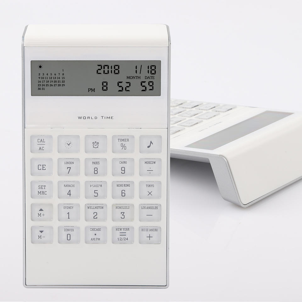 เครื่องคิดเลขทรงโค้งสีขาว รุ่น 8009 พร้อมฟังก์ชันปฏิทินแบบถาวร ใช้พลังงานจากแบตเตอรี่ วัสดุ ABS เหมาะสำหรับเป็นของขวัญ